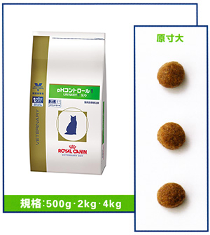 猫用 pHコントロール1は、下部尿路疾患(ストルバイト結石症およびシュウ酸カルシウム結石症)の猫に給与することを目的として、特別に調製された食事療法食です。この食事は、マグネシウムなどのミネラル成分を調整しています。 |